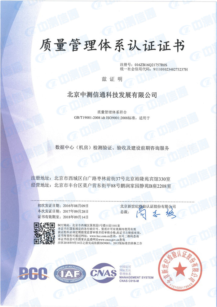經(jīng)過公司全體員工2017年的籌備及CNAS、CMA的運(yùn)行,我公司成功獲得數(shù)據(jù)中心第三方檢測機(jī)構(gòu)的資質(zhì)認(rèn)可(CNAS認(rèn)證及CMA認(rèn)證),公司在數(shù)據(jù)中心驗(yàn)證測試方面又邁出了堅(jiān)實(shí)一步。