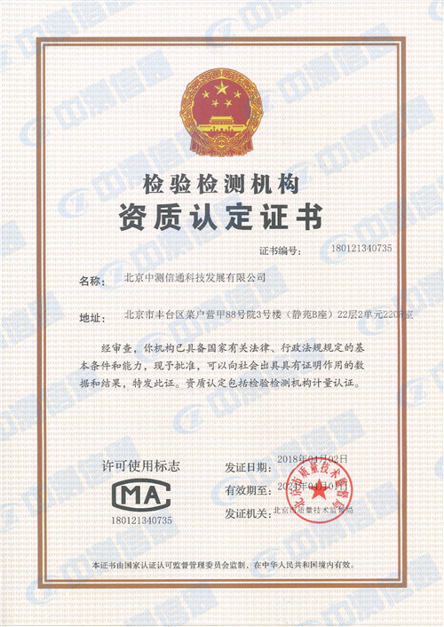 CNAS資質(zhì)由北京市科學(xué)技術(shù)委員會(huì)、資質(zhì)證書北京市技術(shù)監(jiān)督局頒發(fā),CNAS是中國合格評定國家認(rèn)可委員會(huì)(China National Accreditation Service for Conformity Assessment)的英文簡稱。CNAS是根據(jù)《中華人民共和國認(rèn)證認(rèn)可條例》的規(guī)定,由國家認(rèn)證認(rèn)可監(jiān)督管理委員會(huì)批準(zhǔn)設(shè)立并授權(quán)的國家認(rèn)可機(jī)構(gòu),統(tǒng)一負(fù)責(zé)對認(rèn)證機(jī)構(gòu)、實(shí)驗(yàn)室和檢查機(jī)構(gòu)等相關(guān)機(jī)構(gòu)的認(rèn)可工作。