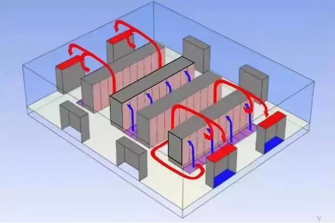 最后,于在回風(fēng)不經(jīng)過機架而直接進(jìn)入熱通道之后正確地引導(dǎo)回風(fēng)。在這個階段,旁路氣流問題可能包括機架下,機架之間,機架頂部的空氣流動,并纏繞在通道的末端。