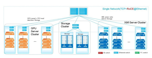 不同類型的應用對數(shù)據(jù)中心網(wǎng)絡有著不同的要求。前端網(wǎng)絡通常采用TCP協(xié)議,IP/以太網(wǎng)絡技術成為前端網(wǎng)絡主流技術,成本低、擴展性好;存儲網(wǎng)絡一直在追求大帶寬高吞吐以充分發(fā)揮存儲盤和CPU的效率,上世紀90年代末采用同時期比Ethernet速率更高的FC技術。進入20世紀,隨著更高速率的SSD的規(guī)模應用,特別是近來高速低時延的NVMe技術的出現(xiàn),存儲需要更高速更高效的網(wǎng)絡;計算網(wǎng)絡主要采用InfiniBand專網(wǎng),典型代表為HPC等高性能業(yè)務,低時延是其極致追求。但隨著RoCE技術的深入發(fā)展,Ethernet在計算網(wǎng)絡中的應用也逐漸普遍。