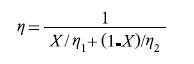 針對(duì)IT設(shè)備電源側(cè),忽略交流或直流配電線路上的損耗,IT設(shè)備雙路電源的整體供電效率依賴于兩路電源模塊不同工作模式及輸入電源的制式。IT設(shè)備雙路電源模塊總的效率計(jì)算公式為