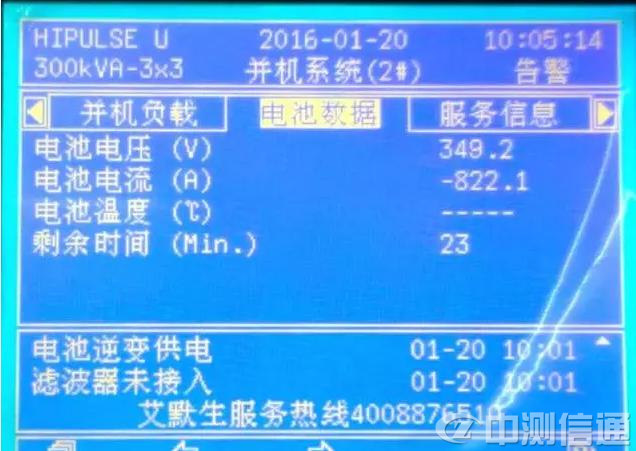 UPS接假負(fù)載后進(jìn)行電池放電測(cè)試的電池參數(shù)
