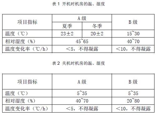 開機時機房的溫、濕度,停機時機房的溫、濕度如表所示。