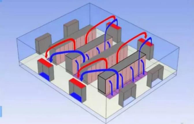 最后,于在回風(fēng)不經(jīng)過機(jī)架而直接進(jìn)入熱通道之后正確地引導(dǎo)回風(fēng)。在這個階段,旁路氣流問題可能包括機(jī)架下,機(jī)架之間,機(jī)架頂部的空氣流動,并纏繞在通道的末端。