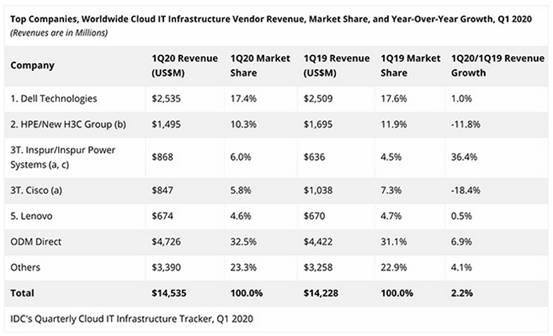 面向公共云和私有云等云環(huán)境的IT基礎(chǔ)設(shè)施產(chǎn)品(服務(wù)器、企業(yè)存儲(chǔ)和以太網(wǎng)交換機(jī))銷(xiāo)售的供應(yīng)商收入在2020年第一季度增長(zhǎng)了2.2%,而傳統(tǒng)的非云基礎(chǔ)設(shè)施的投資根據(jù)IDC公司的調(diào)查數(shù)據(jù),同比下降了16.3%。