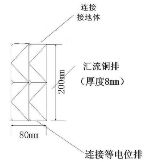 在機(jī)房設(shè)置兩塊匯流排,規(guī)格為80×8mm銅板(兩塊銅板焊接),長(zhǎng)20-30厘米,把匯流排與等電位均壓帶連接。通過等電位聯(lián)結(jié)導(dǎo)體將等電位聯(lián)結(jié)帶就近與接地匯流排、各類金屬管道、金屬線槽、建筑物金屬結(jié)構(gòu)等進(jìn)行連接。