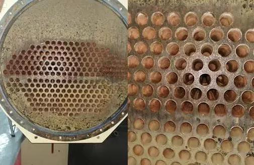 冷凝器內(nèi)制冷劑溫度一般在65℃以上,雖然冷卻水在進(jìn)出冷凝器時(shí)整體的最高溫度不超過35℃,但在冷凝器換熱單元中靠近65℃以上制冷劑的局部冷卻水由于溫度較高,會(huì)產(chǎn)生水垢等增加換熱熱阻,影響冷機(jī)的負(fù)載率 |